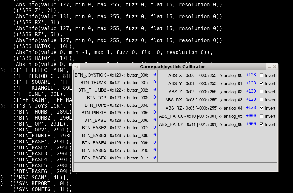 $ py4bot-gui-evcal.py /dev/input/by-id/usb-DragonRise_Inc._Generic_USB_Joystick-event-joystick